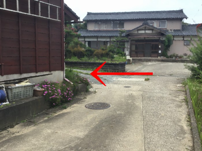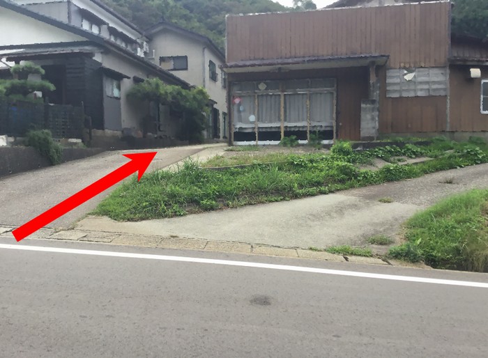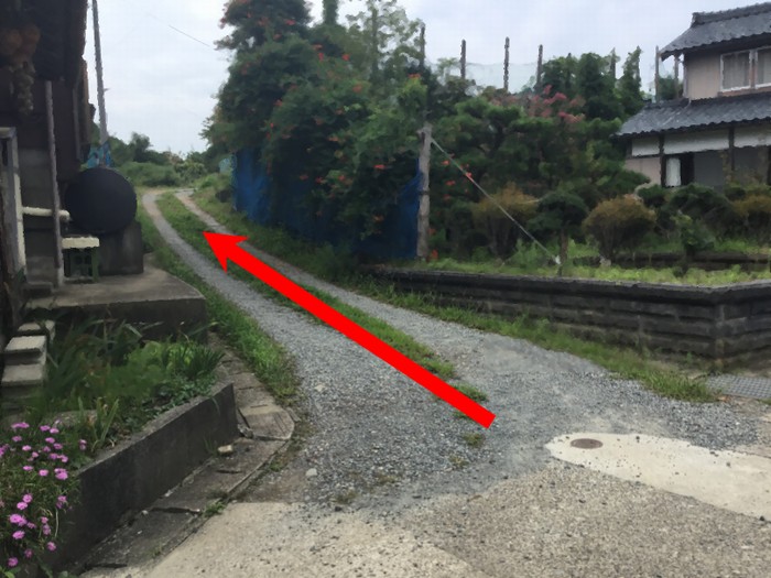 2.402号線を曲がった後、坂道を少し上って、一番手前にある側道にはいります。 海を背中に向けて右折です。
